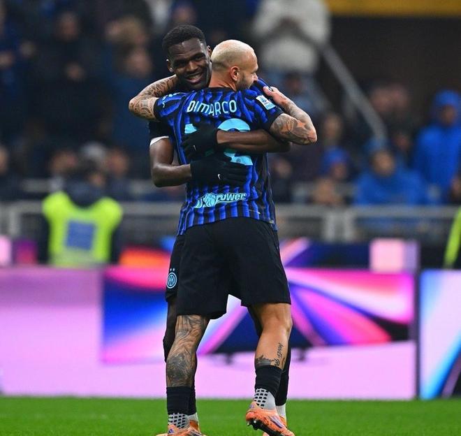蓝黑军团此役在主场攻防两端的发挥,都力压蓝鹰拉齐奥一头,开场3分钟劳塔罗马丁内斯就用一脚抽射,帮助国际米兰取得了1-0的梦幻开局,连续七个自然年意甲进球上双,成为了蓝黑军团队史第四位完成这一成就的球员,下半场国际米兰仍然牢牢掌控着局面,博尼的进球帮助球队扩大领先,虽然泽林斯基的贴地斩因为队友的手球在先被取消,但并不影响国际米兰2-0将拉齐奥斩于马下,凭借这一场胜利,国米登顶意甲第一。