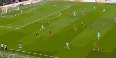 当角球进球被判越位在先之后,曼城的比分优势得以保住,所以在比赛末段,球队的进攻势头再起,左右两路的优势都已经很明显: