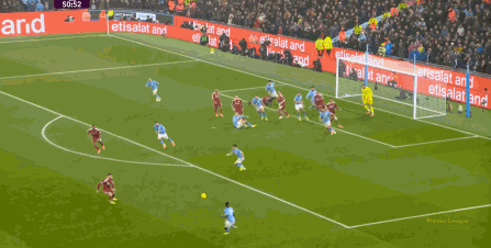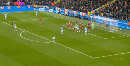 于是在上半场的伤停补时阶段,曼城通过角球进攻收获了第二球: