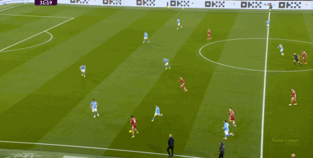 客场丢球,利物浦加强了一些逼抢和压迫,但整体的态度还是比较谨慎,一来是他们要忌惮于由于自己在高位而暴露的后场空间,避免被曼城抓住太多类似的机会: