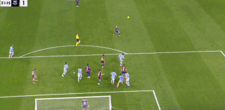 第31分钟,奥尔莫送出挑传,费尔明直接凌空射门打偏