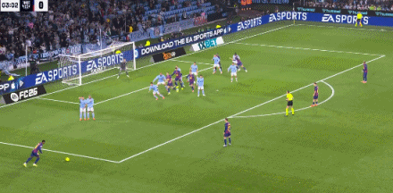 第73分钟,帽子戏法!拉什福德角球助攻莱万头球后蹭入网,塞尔塔2-4巴萨